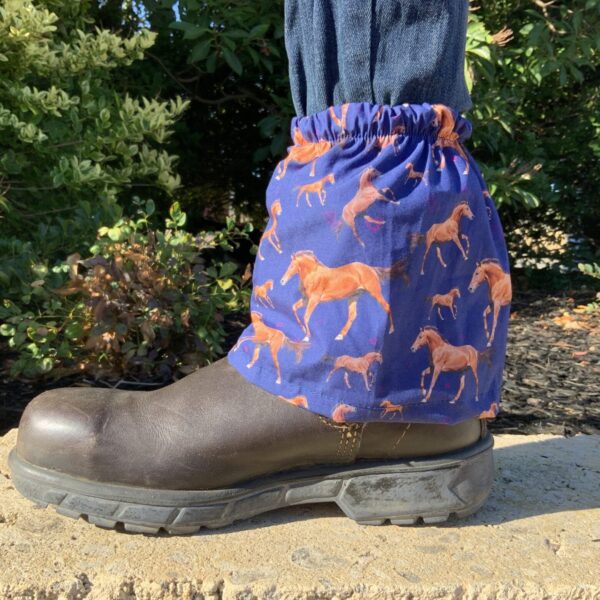 Die Sockenschoner Running Horses sind ausschließlich in Kindergröße erhältlich. Sie passen sich flexibel an und machen jede Stallaktivität bequem mit.