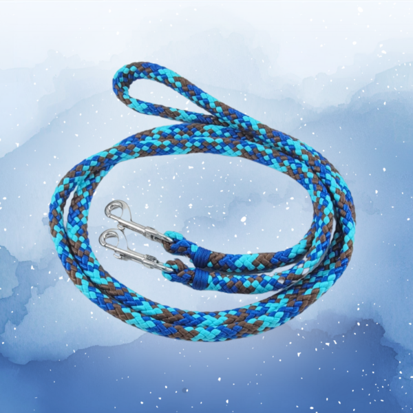 Diese klassischen Zügel in Pony-Größe überzeugen durch schlichte Funktionalität, angenehme Haptik und zuverlässige Qualität. Die harmonische Farbkombination Kobaltblau, Türkis & Braun verleiht dem Equipment einen modernen, stilvollen Look – ideal für Alltag und Training.