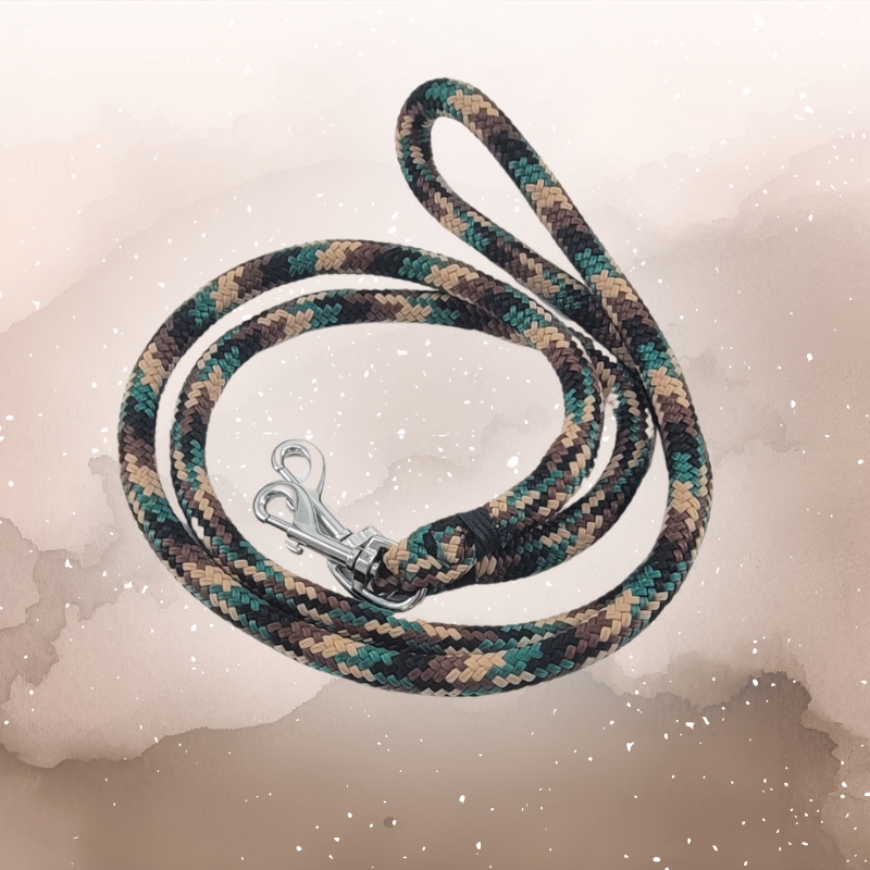 Diese klassische Zügel Shetty in Camouflage überzeugen durch schlichte Funktionalität, angenehme Haptik und zuverlässige Qualität. Das Camouflage-Design in Beige, Braun, Schwarz und Dunkelgrün verleiht dem Equipment einen markanten, sportlichen Look – ideal für Alltag und Training.