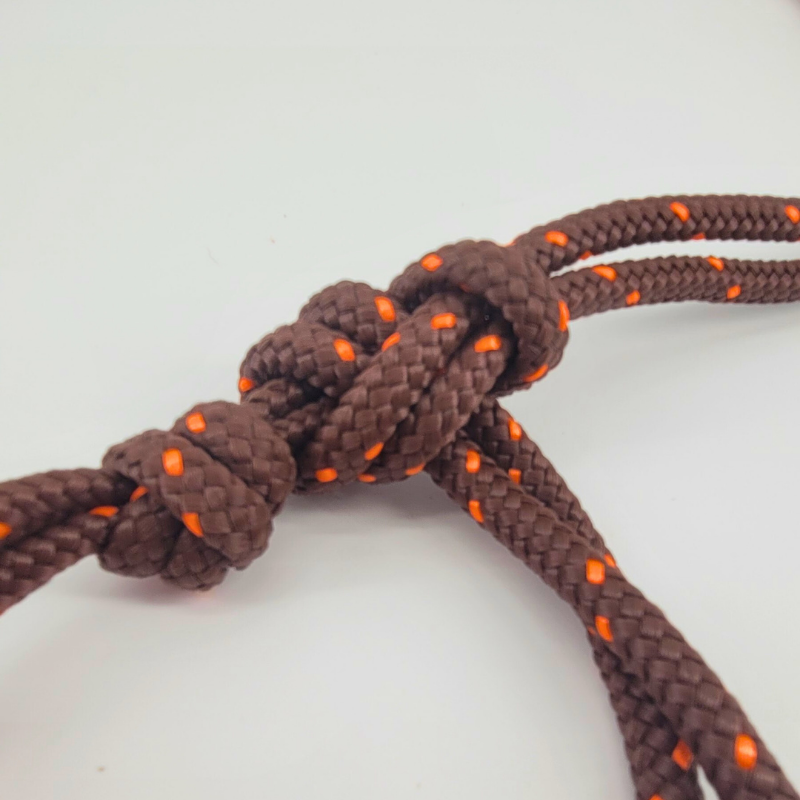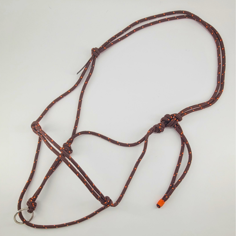 Dieses funktionale Longierknotenhalfter in Warmblut-Größe überzeugt durch sicheren Sitz, präzise Hilfengebung und langlebige Qualität. Die klassische Hauptfarbe Braun wird durch orangefarbene Akzente ergänzt und verleiht dem Halfter einen sportlichen, gut sichtbaren Look – ideal für Training, Bodenarbeit und Horsemanship.