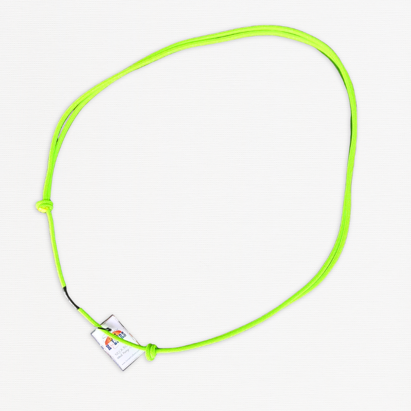 Das verwendete Material besteht aus hochwertigem amerikanischem Seil, das für seine Langlebigkeit und gleichmäßige Flechtstruktur bekannt ist. Dadurch bleibt der Halsring auch bei regelmäßiger Nutzung zuverlässig und angenehm in der Handhabung.
